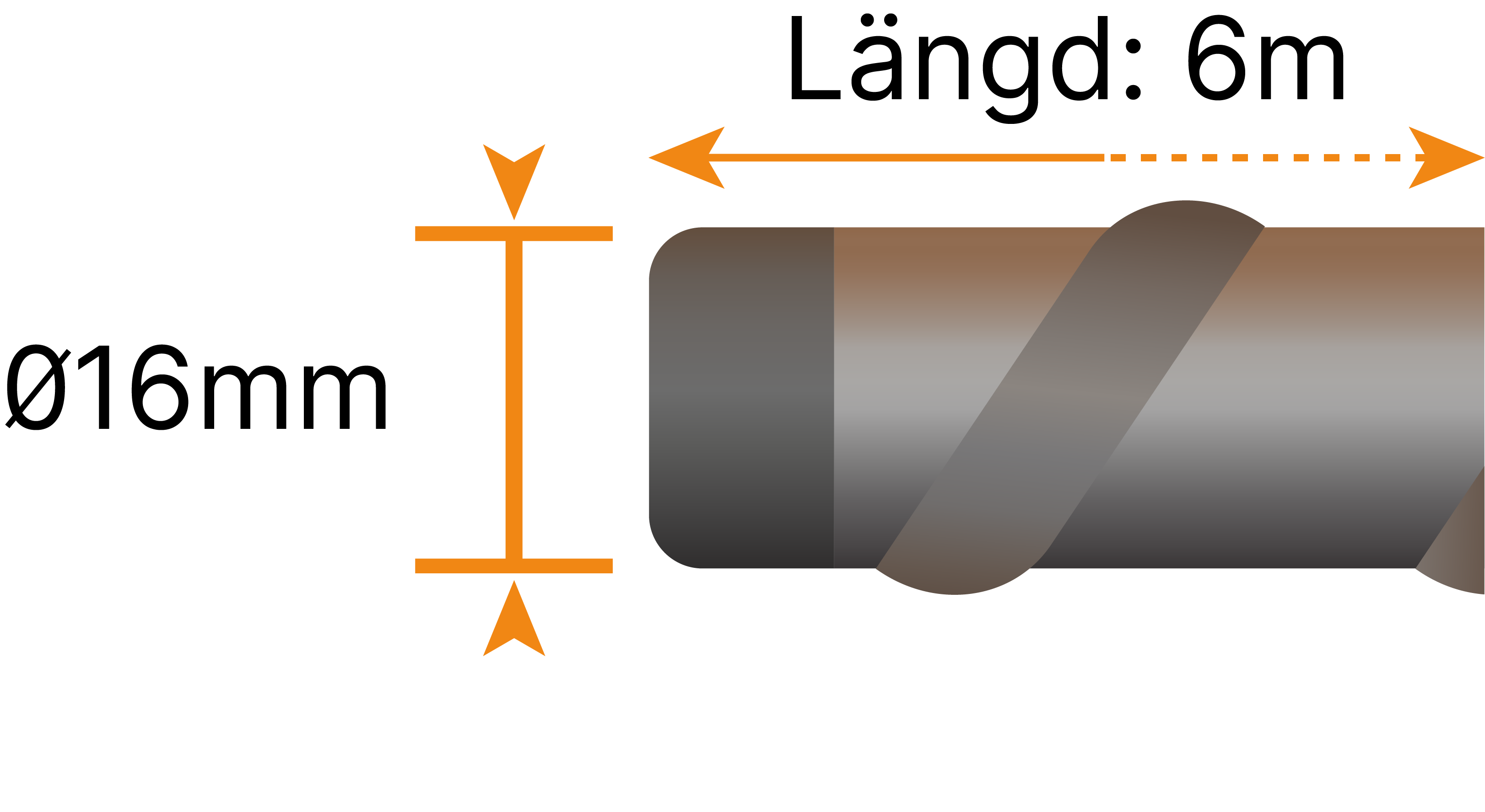 Armeringsstål med diametern 16mm och längden 6000mm
