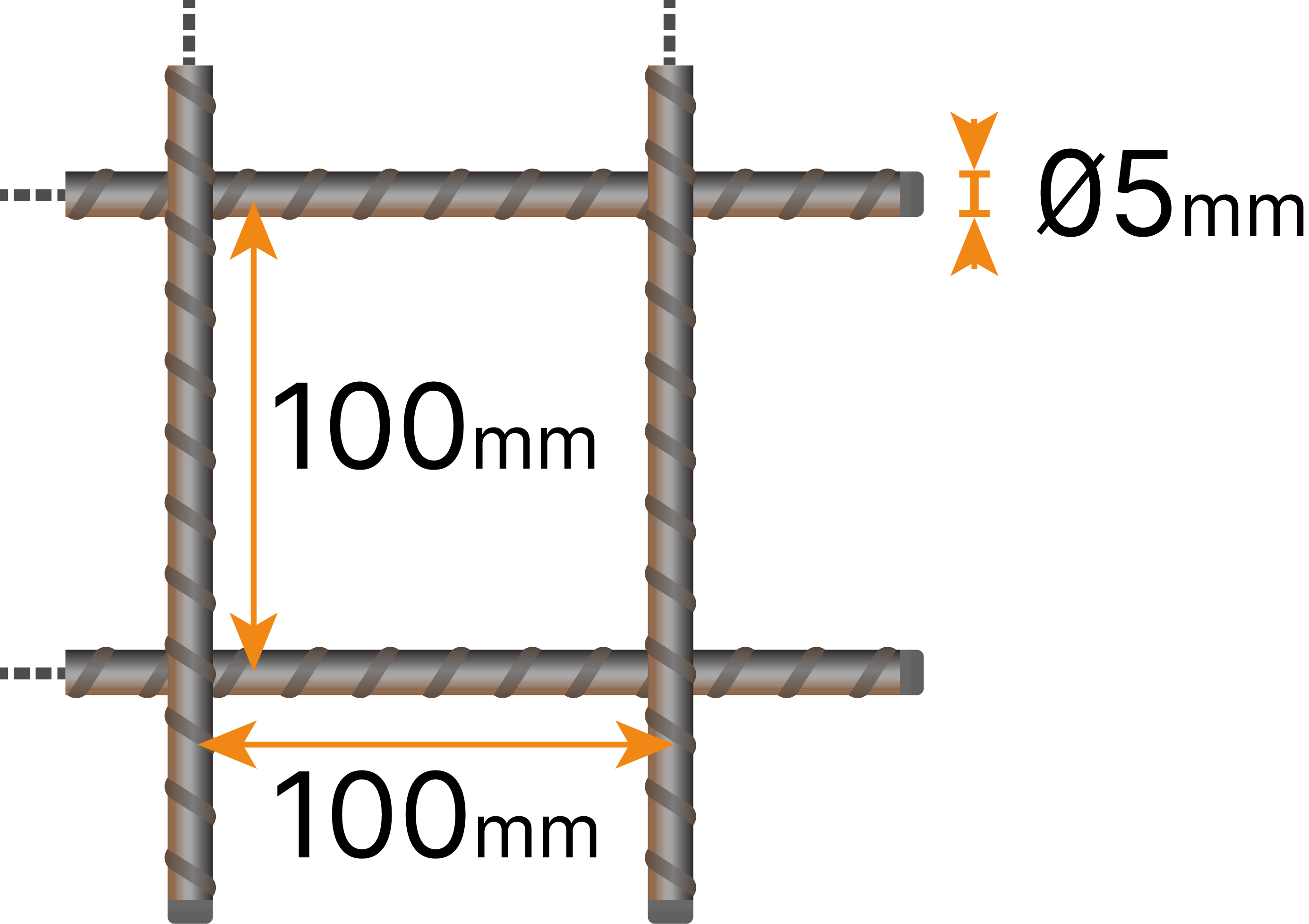 Armeringsnät 5100 har en godstjocklek på 5mm och en rutstorlek på 100x100mm