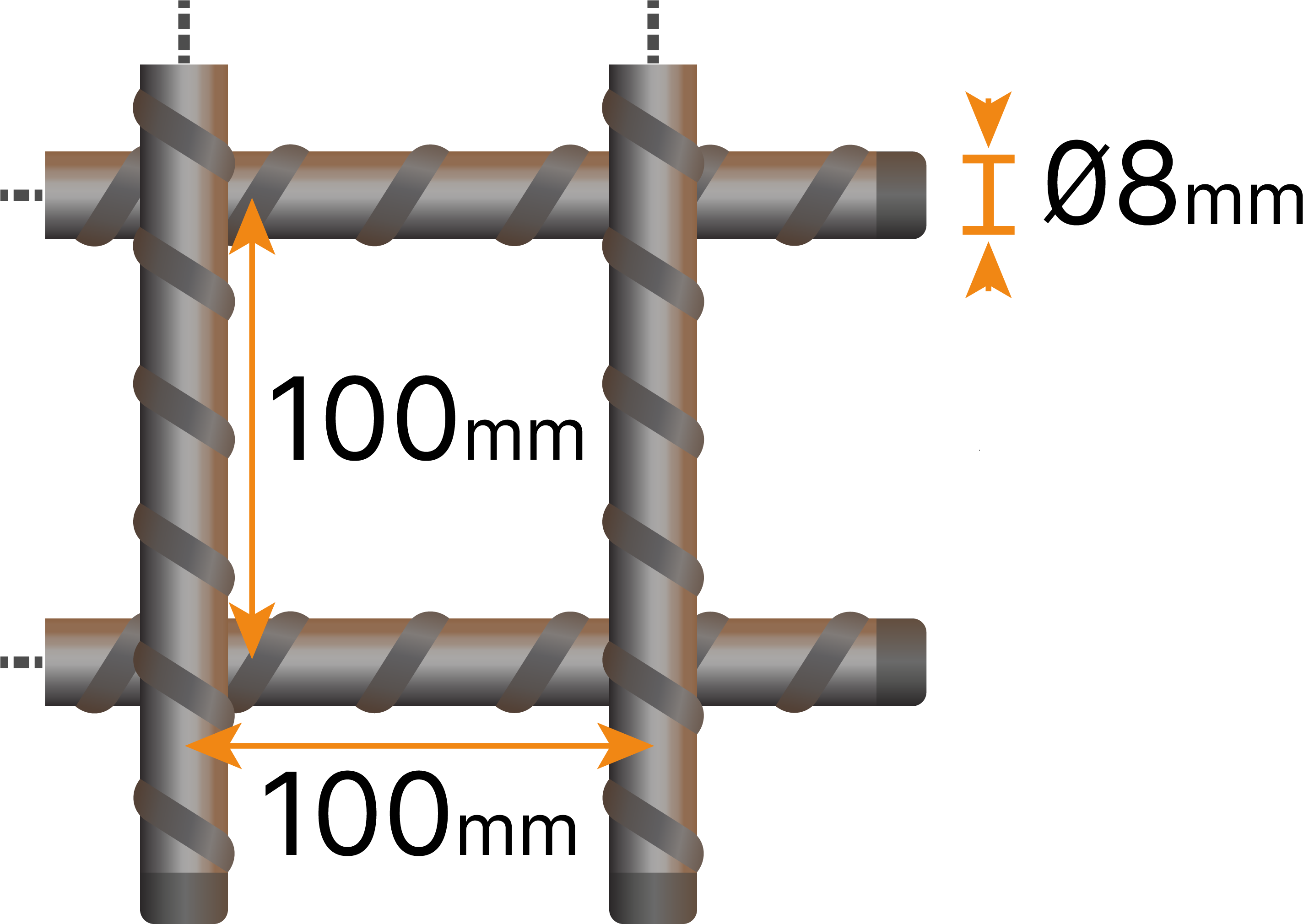 Armeringsnät 8100 Fingerskarv har en godstjocklek på 8mm och en rutstorlek på 100x100mm