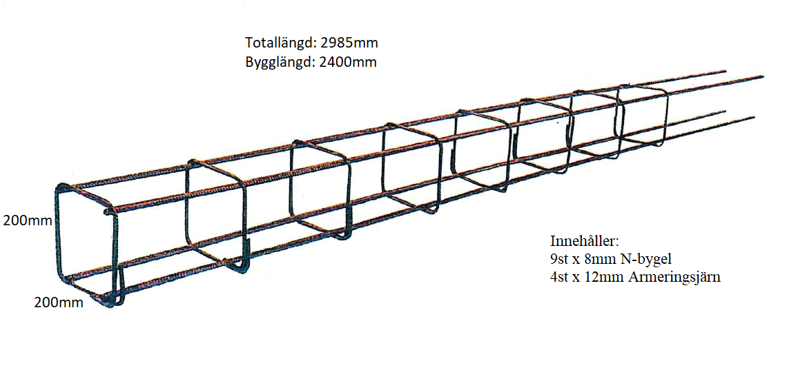 Balken innehåller 8st 8mm N-byglar och 4st 12mm Armeringsjärn